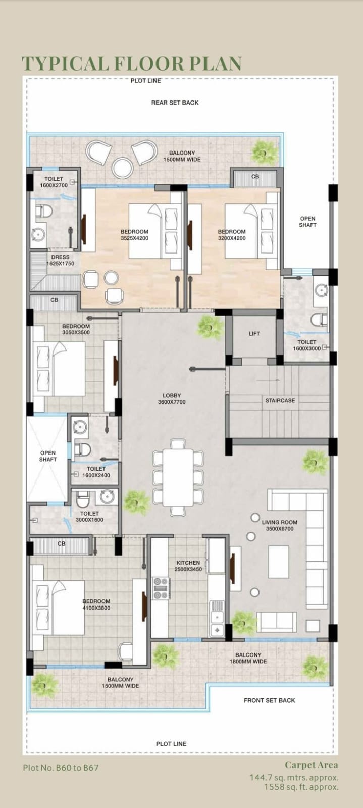 Discover spacious luxury in this elegant 3BHK home, designed with large bedrooms, a bright living area, and premium finishes throughout. Perfect for families, it offers modern comfort, excellent ventilation, and thoughtfully planned interiors that bring style and functionality together. With generous balconies and a peaceful ambience, this home ensures a relaxed lifestyle. A refined space crafted to elevate everyday living with ease and elegance. Enhanced with smart design elements and quality materials, it brings lasting value. A perfect blend of comfort, style, and modern living.